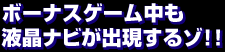 BIG&REGボーナス中も液晶ナビが出現したら、ナビと同じ順番にリールを止めよう。BB、RB、そしてサイバーラッシュのコンビネーションが怒涛の出玉を更に加速する!