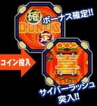 | 通常プレイ中、スタートレバーでいきなり押し順ナビが出現する事が!液晶ナビ通りに押して、何も揃わなければ、ボーナスorサイバーラッシュだ! |