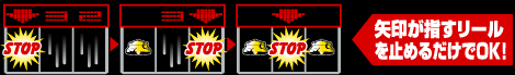 リール上部の大型ドットマトリックスに押し順ナビが出現!目押しは一切不要。デジタル数字の番号順にリールを止めるだけでとがどんどん揃う!目押しの苦手なプレイヤーでも、わかりやすく安心して楽しめます。