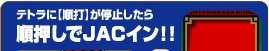 | カンフーレツデンのビッグボーナスは、テトラの通りにプレイすれば必ず3回JACインし、まずパンクする事はありません。更に30ゲームの小役ゲームをフルに消化できるため、テトラに「順打」が表示された時だけ左リールにBARを狙えば、いつでも711枚獲得する事ができます。(但し、ビッグ中にハズレがあった場合は除きます。ハズレ確率はわずか1%未満!)誰でも安定した出玉を期待できる、シフト持ち越し機能を超えた驚異の新機能、それがe・max711システムです! |