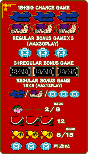 ニーハオ!私はチーパオ。カンフーレツデンのビッグボーナスは、テトラの通りにプレイするだけで、誰でも超大量獲得!さらにカンタン目押しで、いつでも必ず711枚獲得よ!シフト持ち越しを超えた新機能「e・max711」で大量コインをGETしてね!