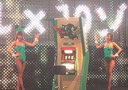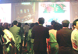 | 試打機前の行列はずっと絶えることがありませんでした。 |
