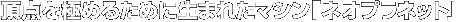 ついに「プラネット」の名に値するマシンが完成しました。時代をリードする斬新さ、アミューズメントとしての完成度、Aタイプの頂点を極めるために誕生したマシン、それが「ネオプラネット」。今世紀のパチスロ史に名前を刻む、新しい王者の登場です。 |