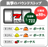 ”出目が主役”のゲーム性がニューパルの真骨頂。「ニューパルサー]」ではシリーズ初のバウンドストップを搭載しました。チャンス目に一喜一憂し、リーチ目を期待してリールを止める、あの面白さはそのままに、新鮮な驚きをプラスしました。