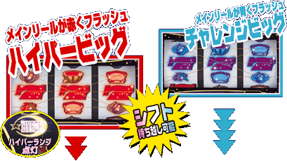 好評の「ツインBBシステム」をより進化させた「ツインBB ver.2」は、ハイパービッグとチャレンジビッグの出現比率を 2:1に設計している。つまり全ボーナスの 2/3がハイパービッグ!「タイプY」のナイツは、「ハイパーゾーン」によってこのハイパービッグの出現をコントロールしている。