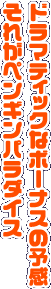 エキサイティングな出玉の波。 ドットアクションの連続が、 ボーナスを予感させる 「ボーナス前兆システム」。 親しみやすく、楽しいキャラクター。 個性的でシンプルな演出が作り出す 絶妙な期待感はそのままに、 飽きのこない面白さを追求したドットアクション。 Aタイプマシンの決定版。 「ペンギンパラダイス」遂に登場!