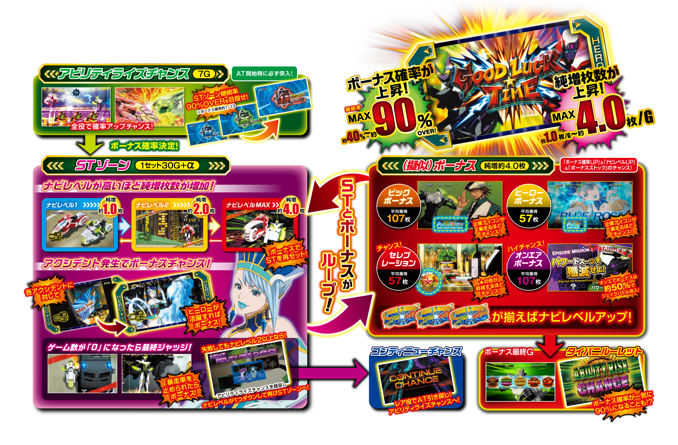 ムービーライブラリ(AT「グッドラックタイム」、ボーナス(AT中)、ナビレベル、ルナティックバトル)を公開しました。