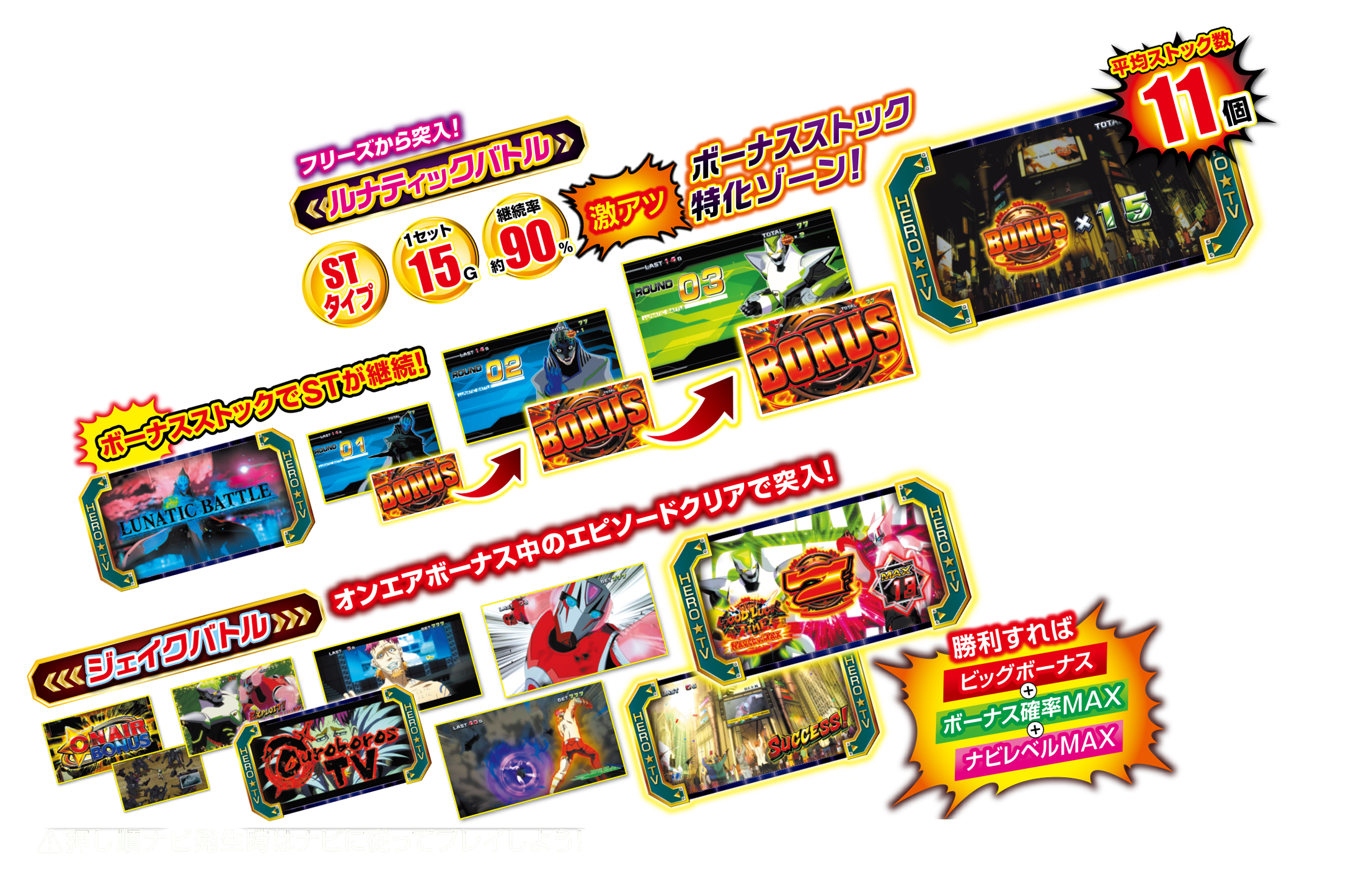 ムービーライブラリ(AT「グッドラックタイム」、ボーナス(AT中)、ナビレベル、ルナティックバトル)を公開しました。