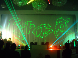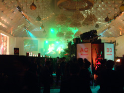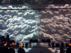 | 突然ステージ全体に煙の映像が!飛天の間全体を覆い尽す演出に来場者も騒然! |