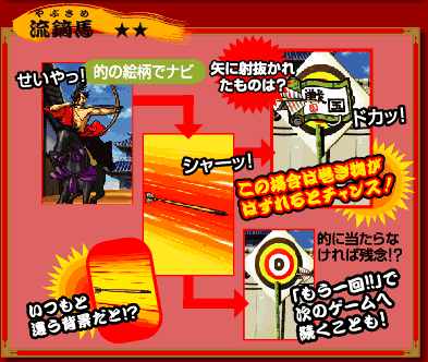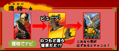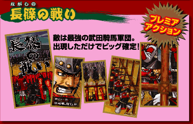 風雲児・織田信長の舞台は躍動的な「動」のイメージ。ここでは絵柄イラストが現れる明快な小役ナビが主役です。