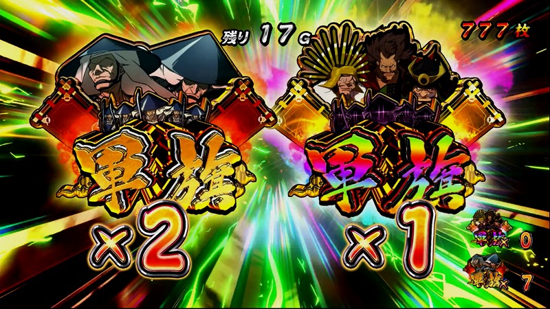 軍旗と真軍旗の大量獲得に期待できるAT中のプレミアボーナス